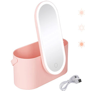 - Travel Makeup Bag Organizer Travel Makeup Case Organizer with LED Light Mirror, The cosmetic mirror is used as the top cover of the receiving box. It can be used separately or mounted and suspended. Rotatable and foldable bracket design.